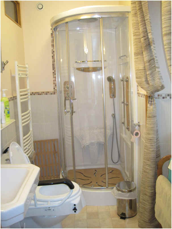 une salle de douche avec W.C. et lavabo.